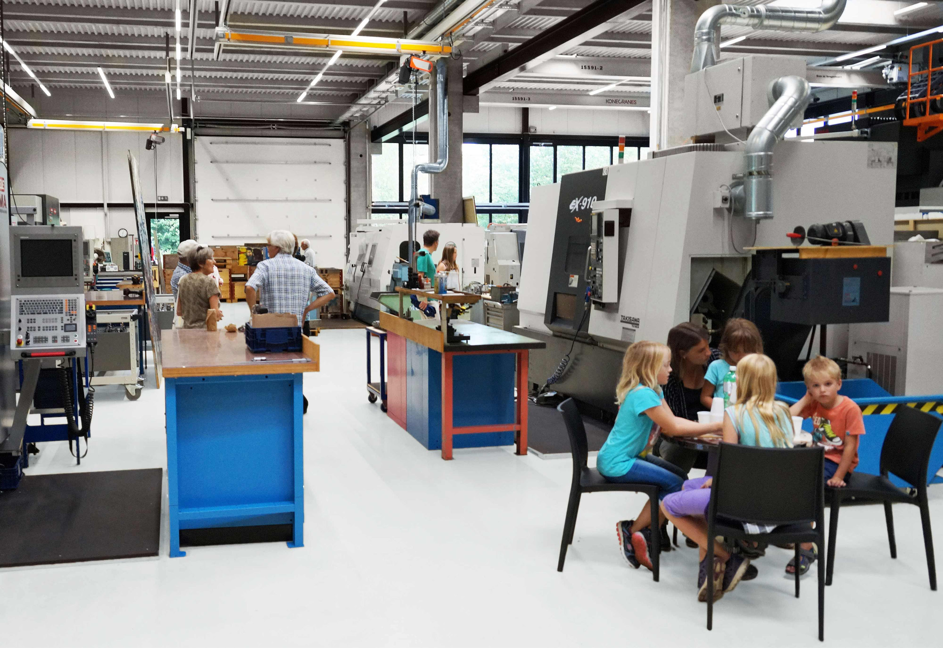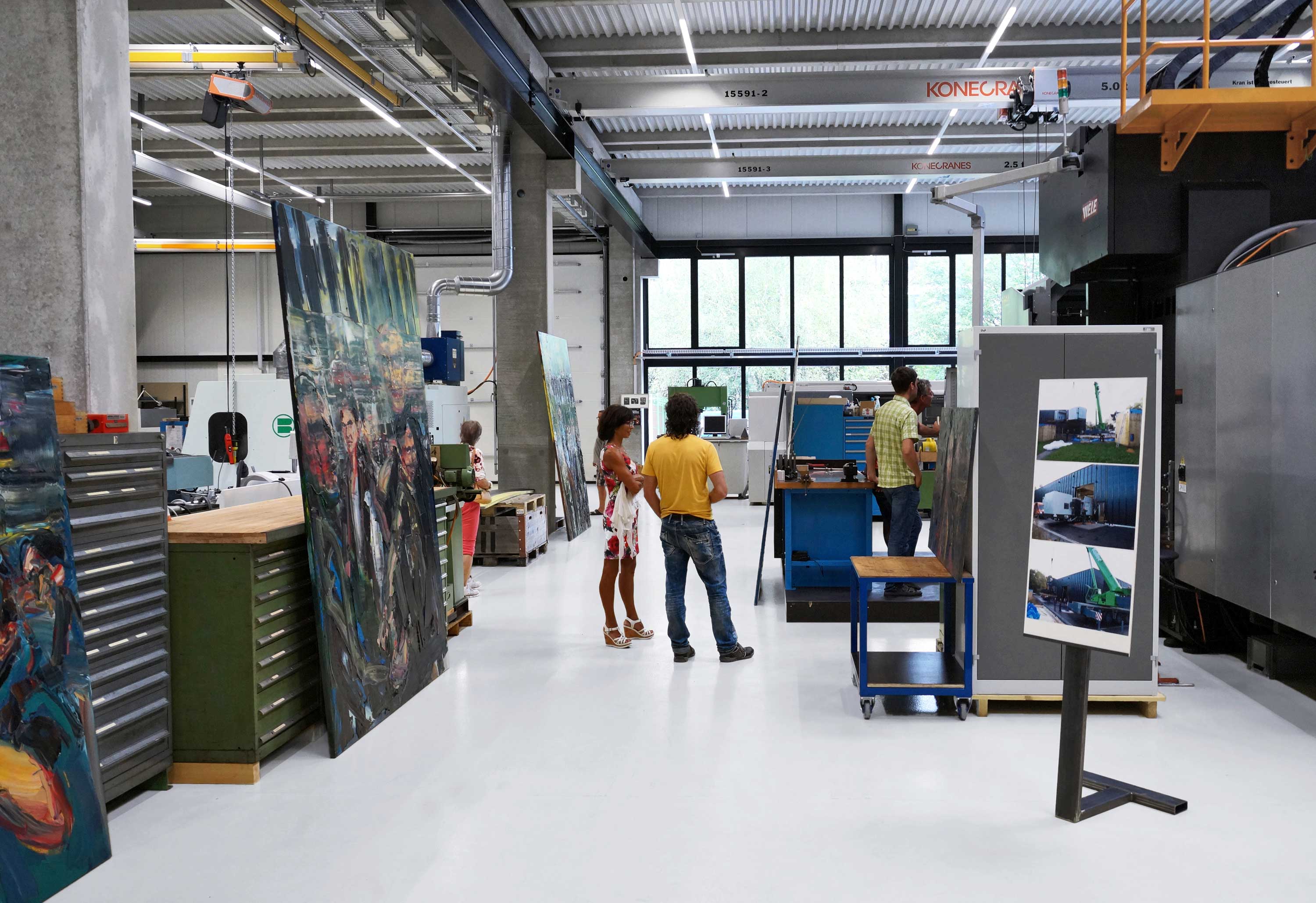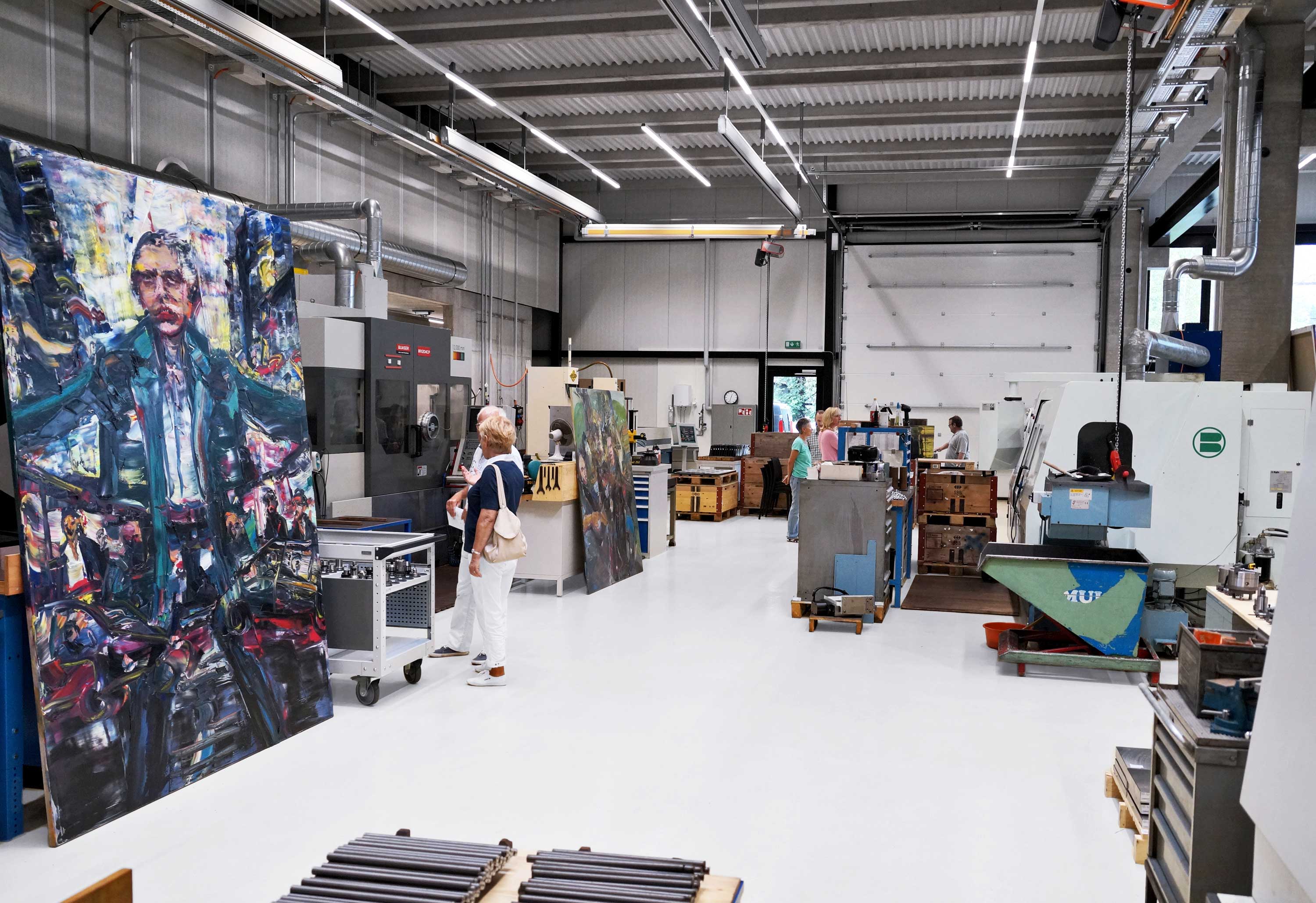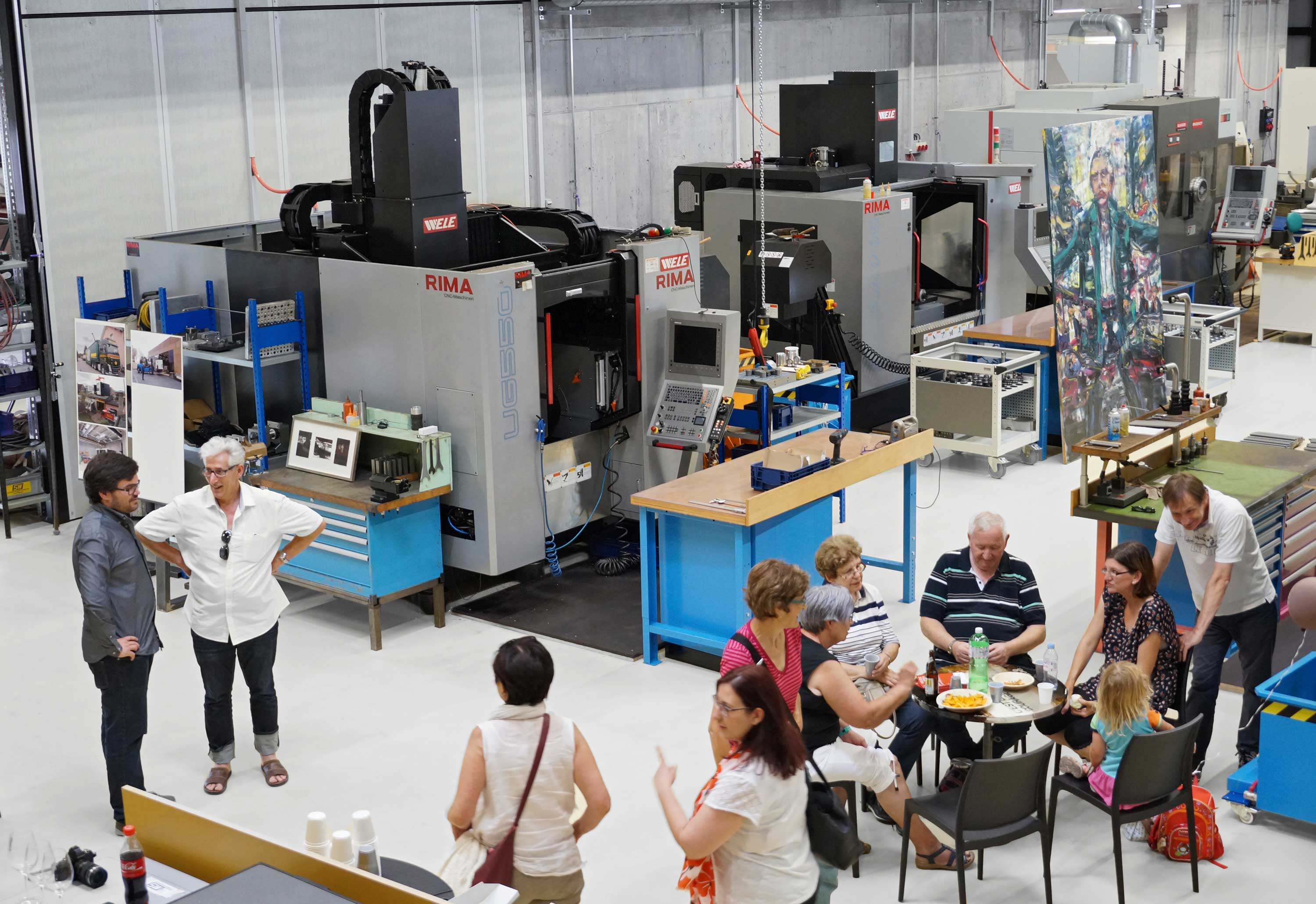 Nach dem Einzug in die neuen Räumlichkeiten, an der Parkstrasse im Viscosepark letzten Oktober, war es eine Premiere, dass die Sonderegger Quirin AG ihre Türen und Tore öffnete. Das 3-tägige Viscose Open bot einen geeigneten Rahmen dafür. Die neuen Räumlichkeiten boten auch der Kunst den nötigen Raum. So schmückten während der Veranstaltungstage zahlreiche Werke des Widnauer Künstlers Simon Kness die grossen Fertigungsräumlichkeiten. Im Zentrum des Besucher-Interessens standen aber die verschiedenen Fertigungs-Möglichkeiten, vorne weg der neue CNC-Fräsautomat für grosse Werkstücke. Die Besucher erfuhren von Quirin, Urs und Raphael Sonderegger persönlich und in individuellen Rundgängen die Details zum Maschinenpark und Prozessablauf. Natürlich wurden auf verschiedenen Werktischen Referenzteile präsentiert, die das Know-how in Fräsen, Drehen, Tieflochbohren und Flachschleifen dokumentierte. Über alle Tage ergab es vertiefte Gespräche unter Fachleuten, aber auch erfrischende Gespräche mit Familien, Jugendlichen und anderen Interessierten. Der Besucheraufmarsch zeigte, dass es ein wirkliches Interesse der Bevölkerung war, in die neue Fertigung der Sonderegger Quirin zu schauen.
